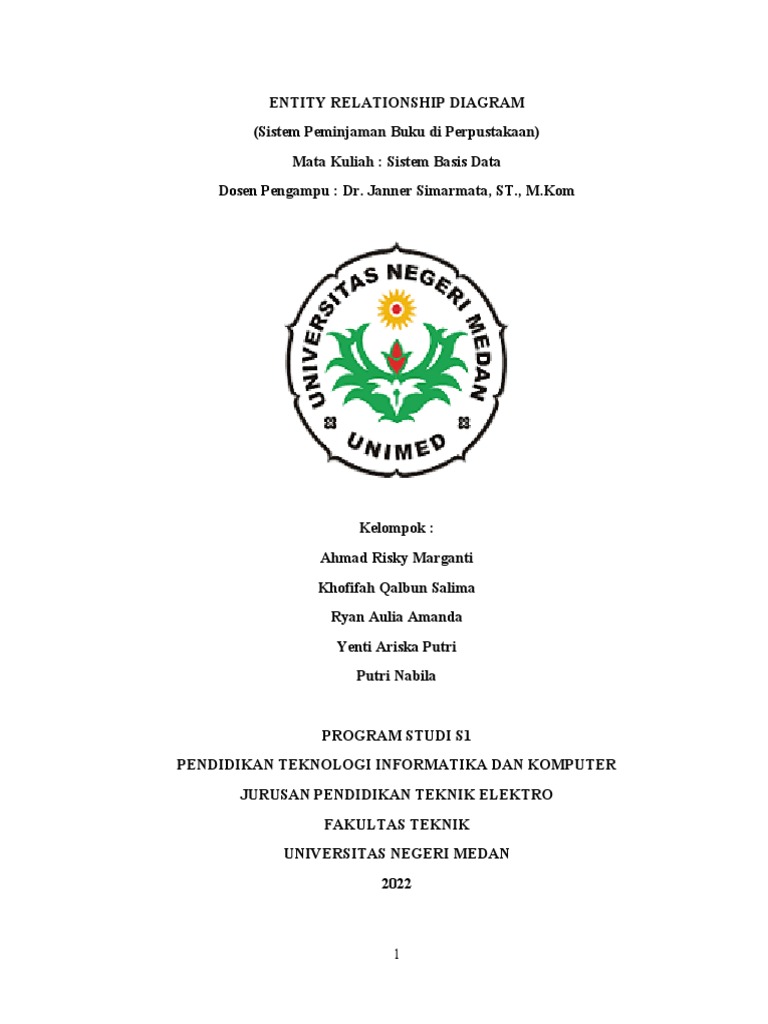 Makalah Pada Materi Entity Relationship Diagram mata kuliah Sistem Basis Data ini dapat