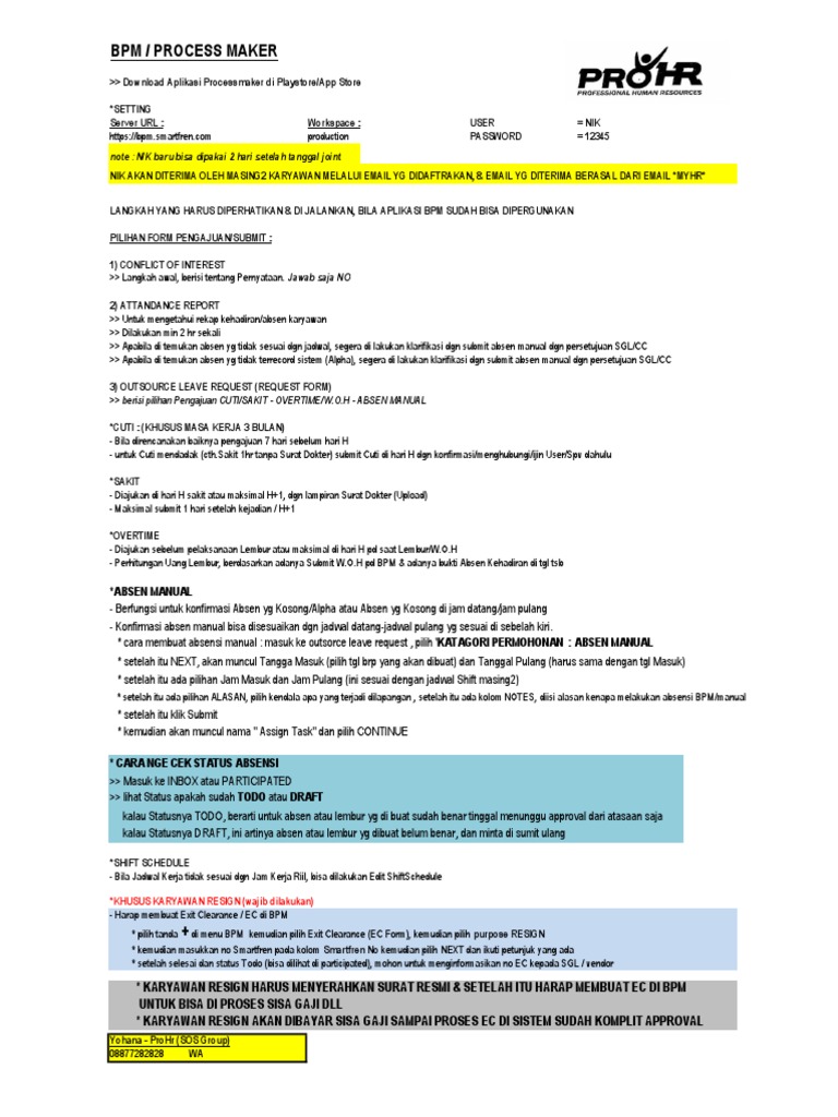 - untuk Cuti mendadak (cth.Sakit 1hr tanpa Surat Dokter) submit Cuti di hari H dgn konfirmasi/menghubungi/ijin User/Spv dahulu