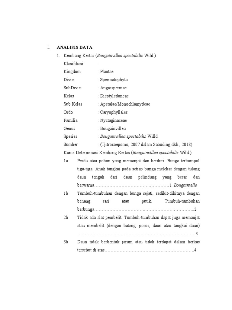 Kunci Determinasi Kembang Kertas (Bougainvillea spectabilis Wild.)