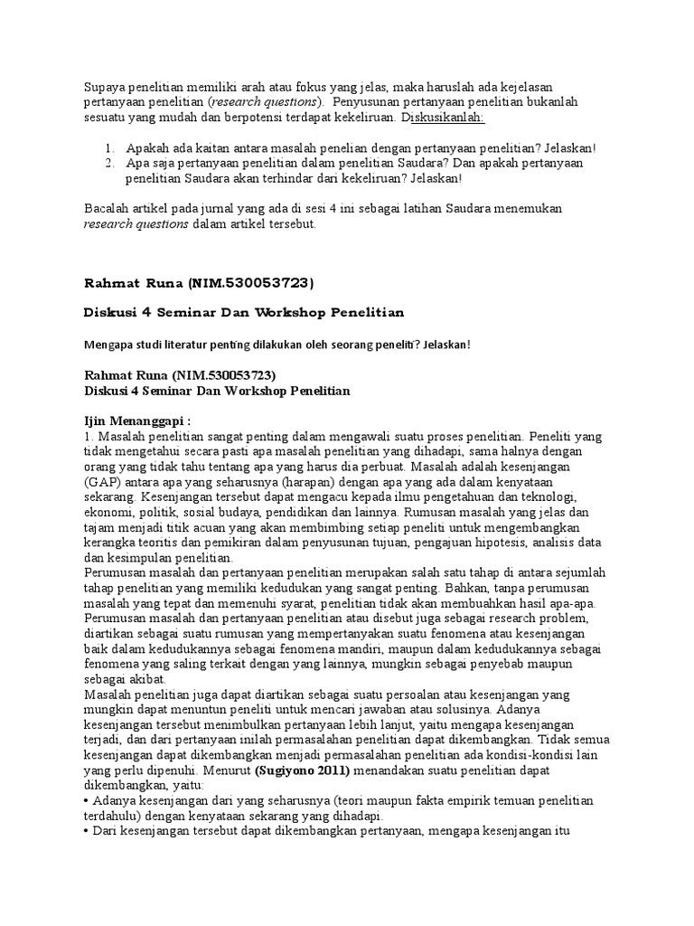 Diskusi 4 Seminar Dan Workshop Penelitian