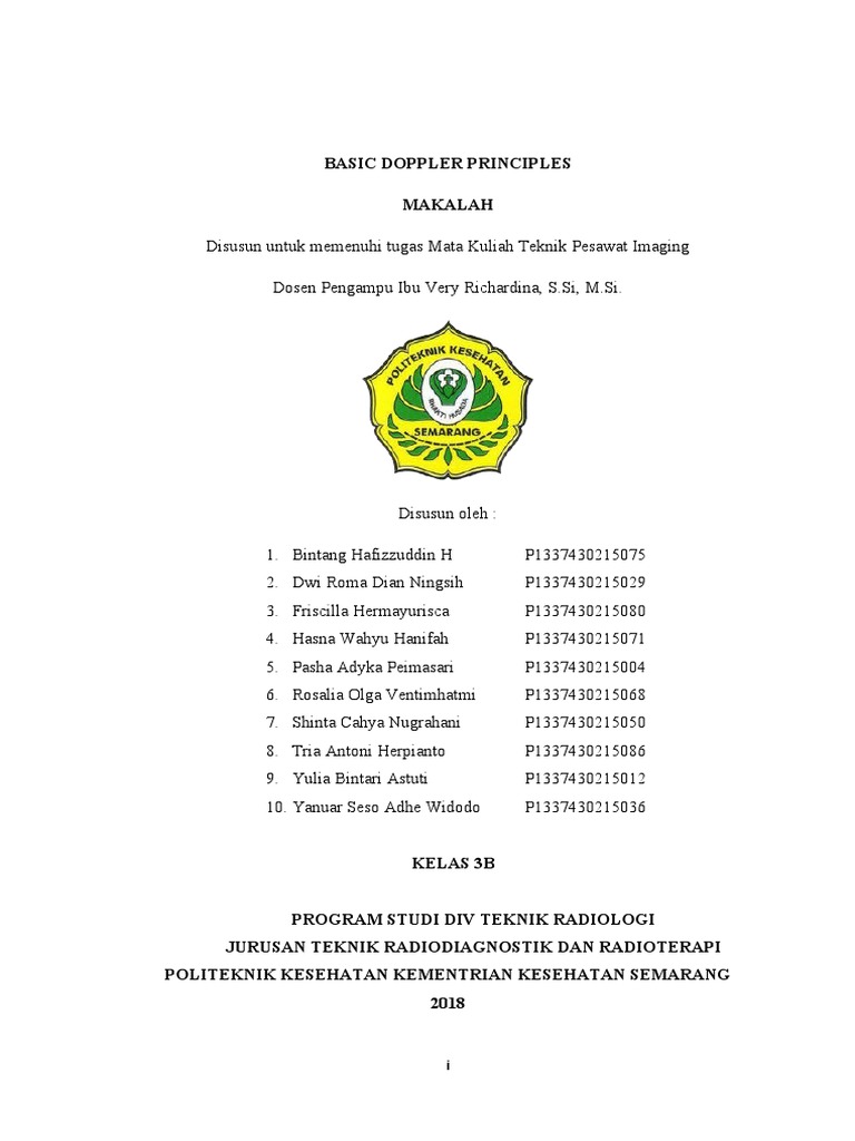 makalah mata kuliah Teknik Pesawat Imeging dengan judul “Basic Doppler