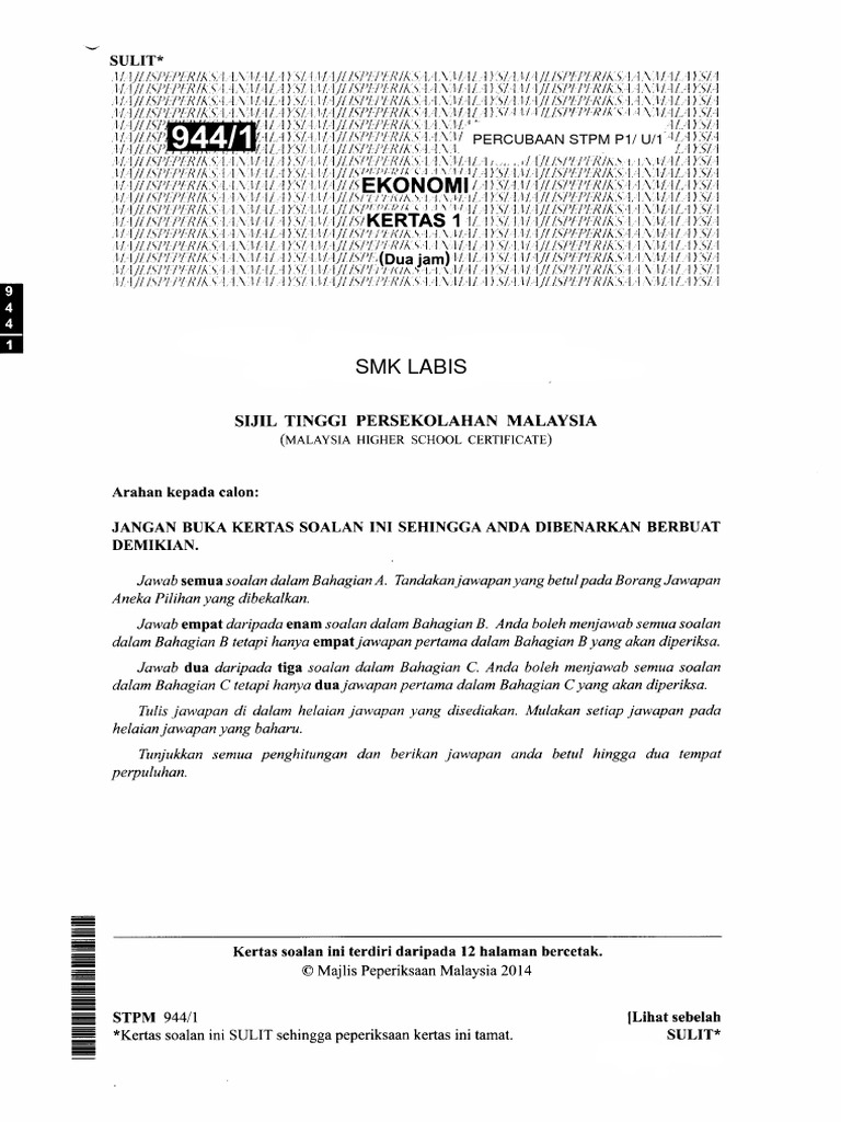 Ekstrak Soalan Ekonomi Penggal 1