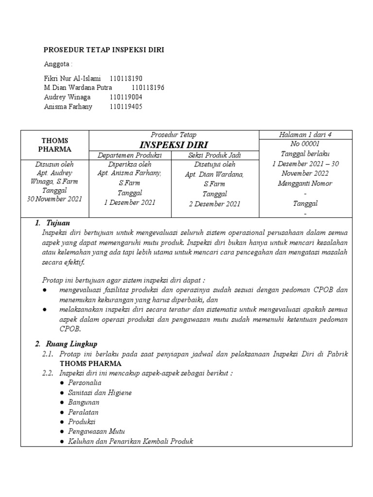 2.1. Protap ini berlaku pada saat penyiapan jadwal dan pelaksanaan Inspeksi Diri di Pabrik