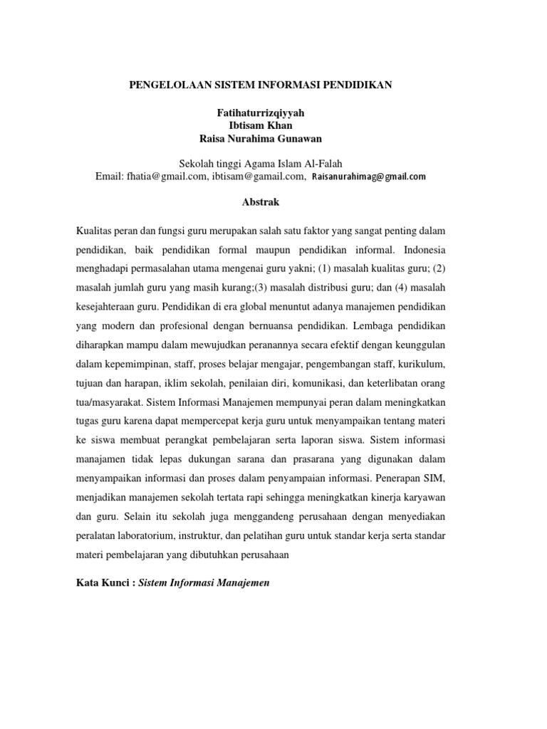 PENGELOLAAN SISTEM INFORMASI PENDIDIKAN