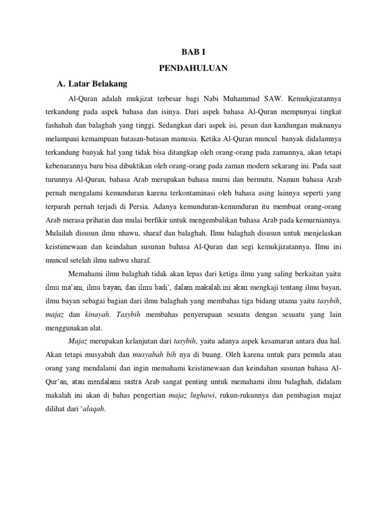 makalah ini akan di bahas pengertian majaz lughawi, rukun-rukunnya dan pembagian majaz