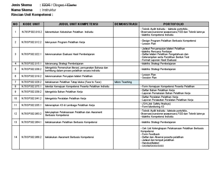 NO KODE UNIT JUDUL UNIT KOMPETENSI DEMONSTRASI PORTOFOLIO