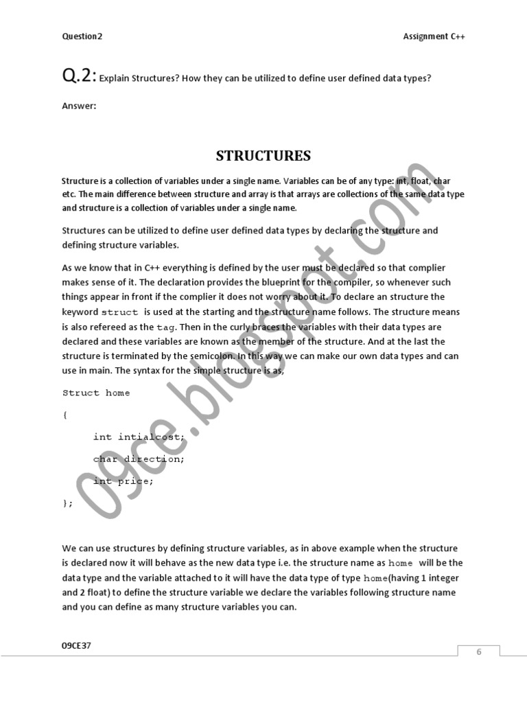 Q.2: Explain Structures? How they can be utilized to define user defined data types?