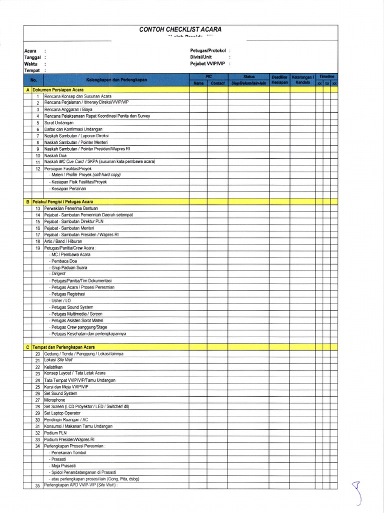 Checklist Persiapan Acara Peresmian PLN