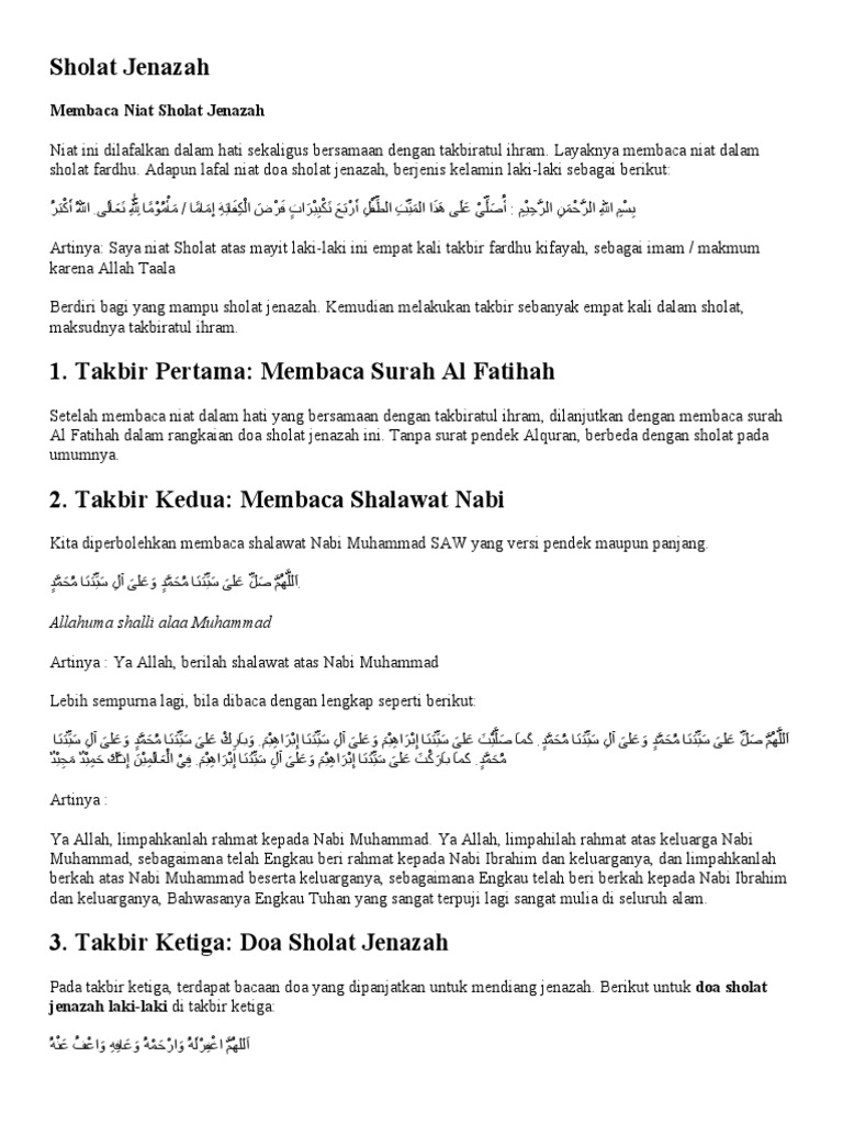 sholat fardhu. Adapun lafal niat doa sholat jenazah, berjenis kelamin laki-laki sebagai berikut:
