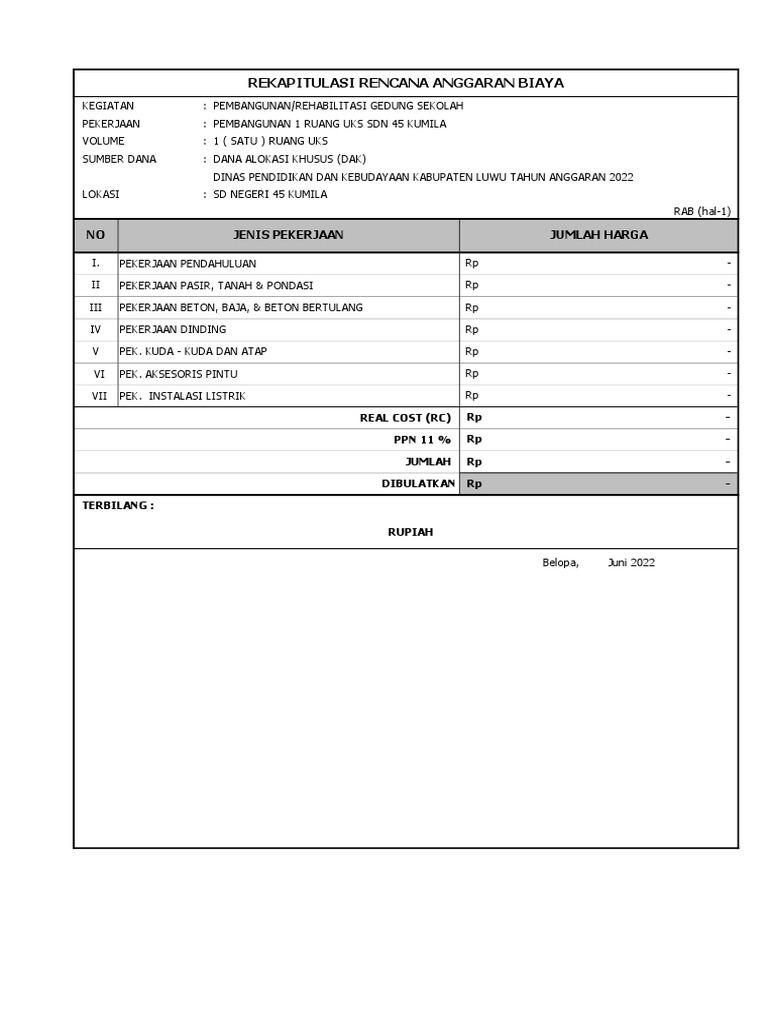 REKAPITULASI RENCANA ANGGARAN BIAYA