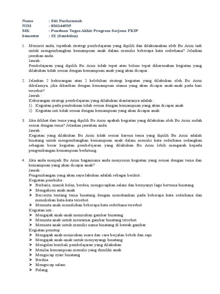 1. Menurut anda, tepatkah strategi pembelajaran yang dipilih dan dilaksanakan oleh Bu Arini tadi