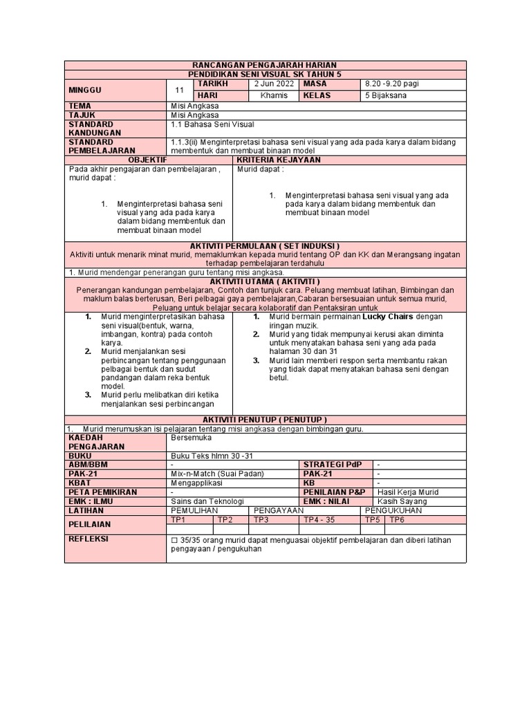 RANCANGAN PENGAJARAH HARIAN