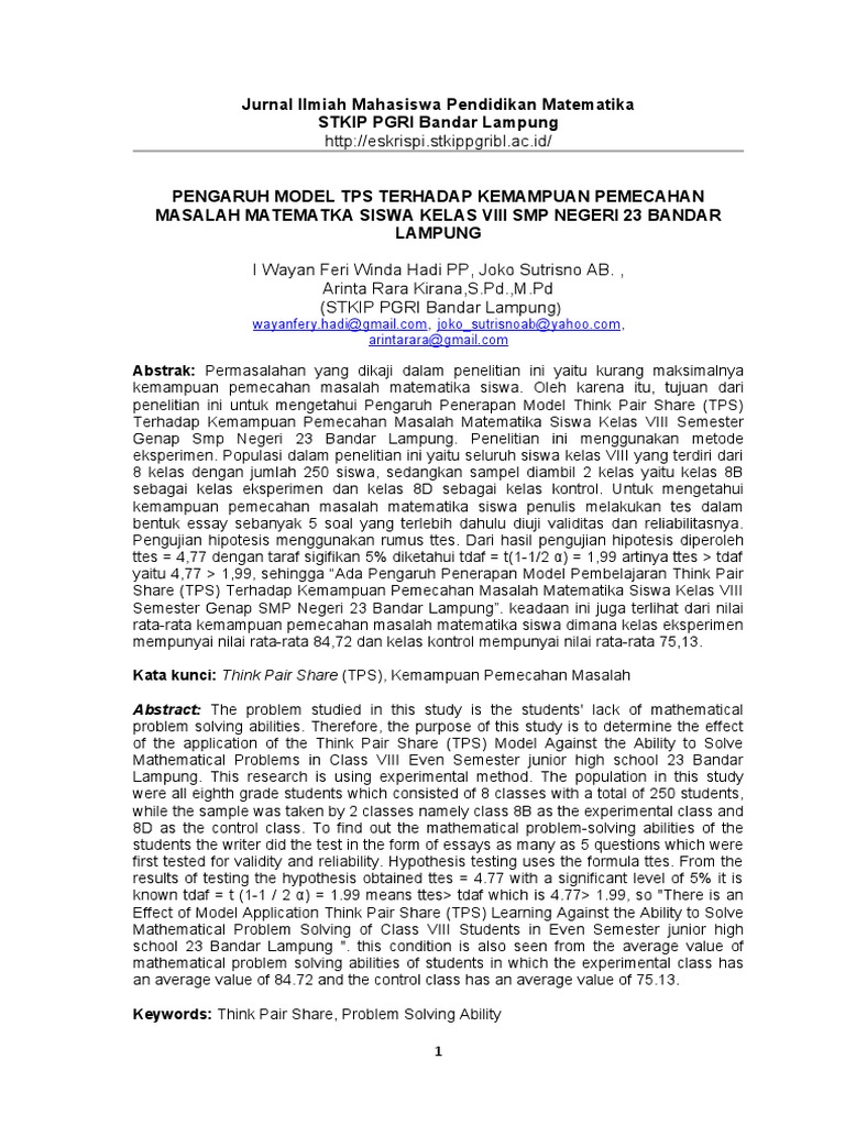 Pengaruh Model TPS pada Pemecahan Masalah Matematika
