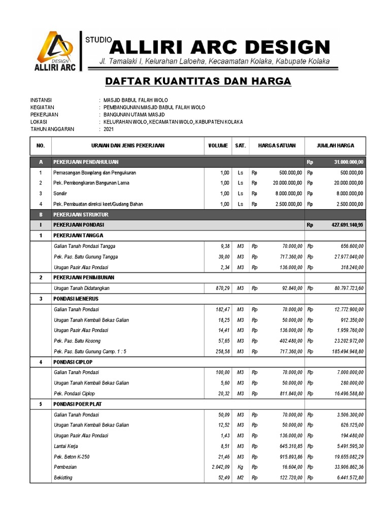 I PEKERJAAN PONDASI Rp 427.691.140,95