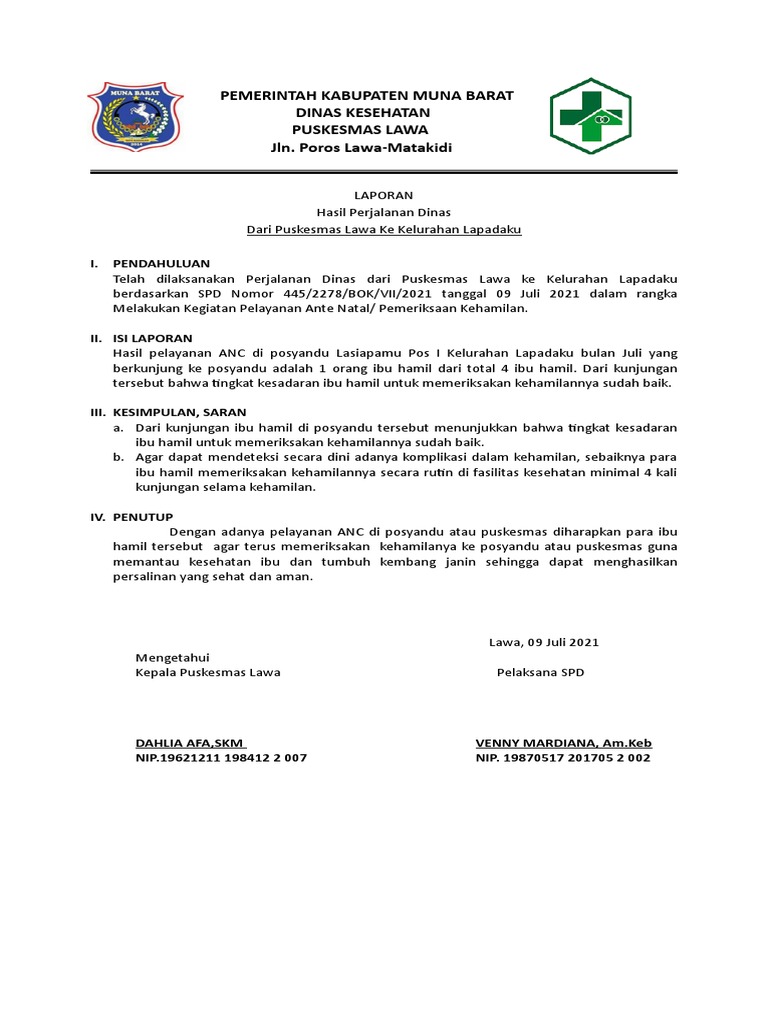 Telah dilaksanakan Perjalanan Dinas dari Puskesmas Lawa ke Kelurahan Lapadaku