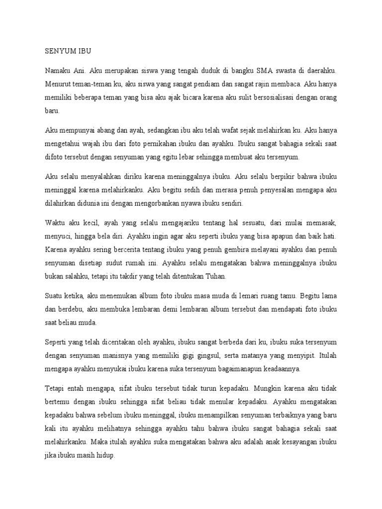 meninggal karena melahirkanku. Aku begitu sedih dan merasa penuh penyesalan mengapa aku