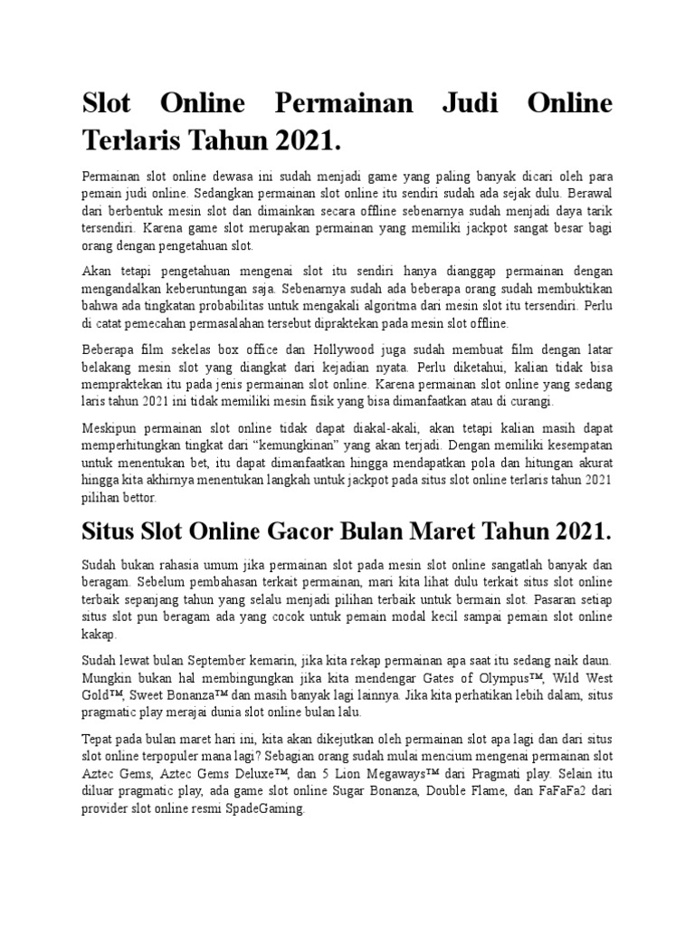 Situs Slot Online Gacor Bulan Maret Tahun 2021.