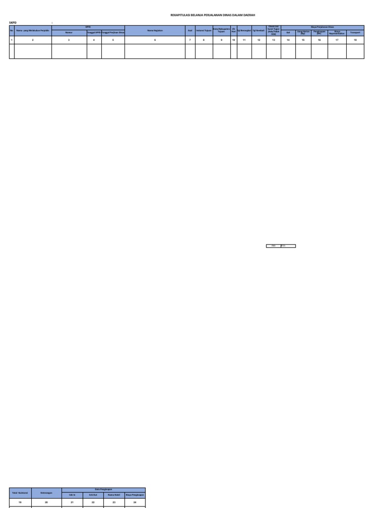 REKAPITULASI BELANJA PERJALANAN DINAS TANPA PESAWAT