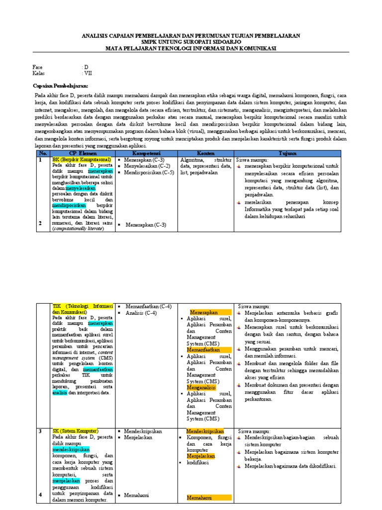 ANALISIS CAPAIAN PEMBELAJARAN DAN PERUMUSAN TUJUAN PEMBELAJARAN