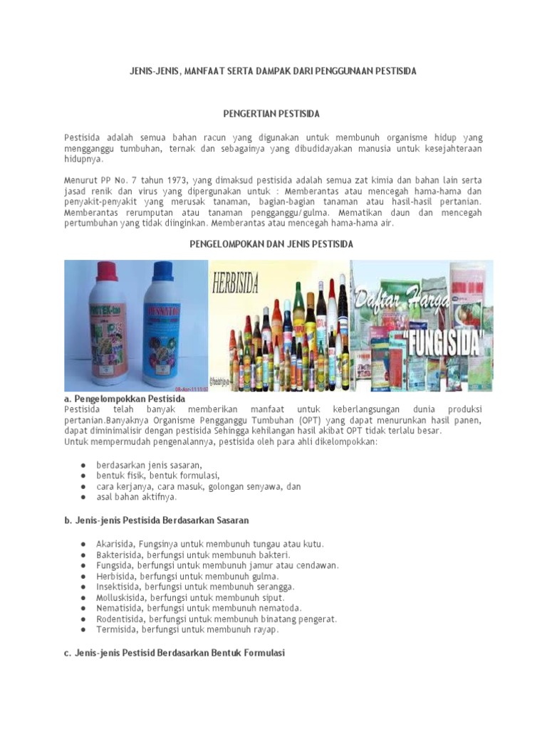 JENIS-JENIS, MANFAAT SERTA DAMPAK DARI PENGGUNAAN PESTISIDA