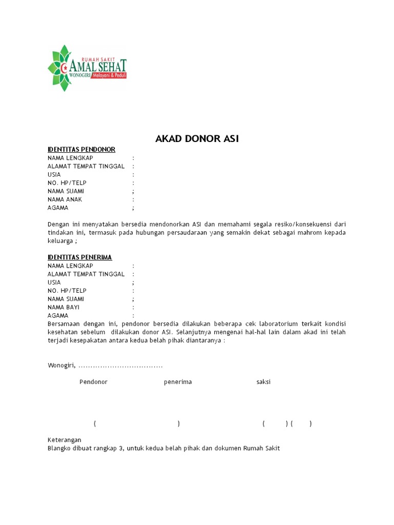 Blangko dibuat rangkap 3, untuk kedua belah pihak dan dokumen Rumah Sakit