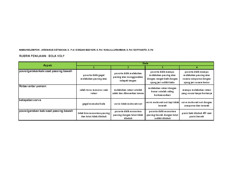 RUBRIK PENILAIAN : BOLA VOLY