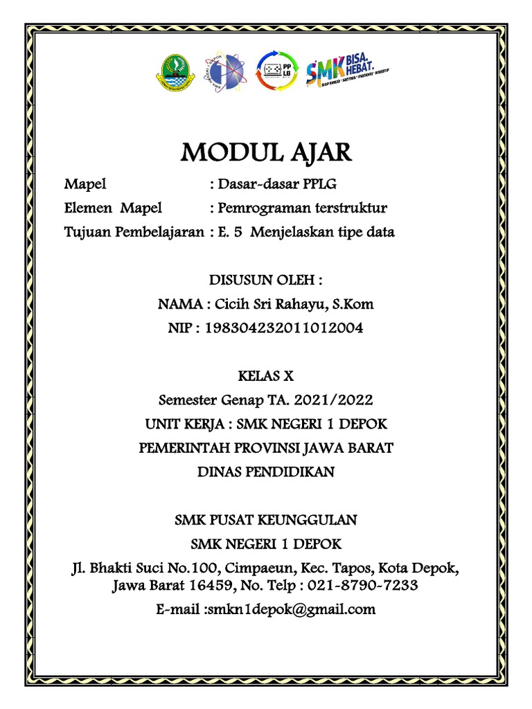 Menjelaskan 6 tipe data dan contoh penerapan tipe
