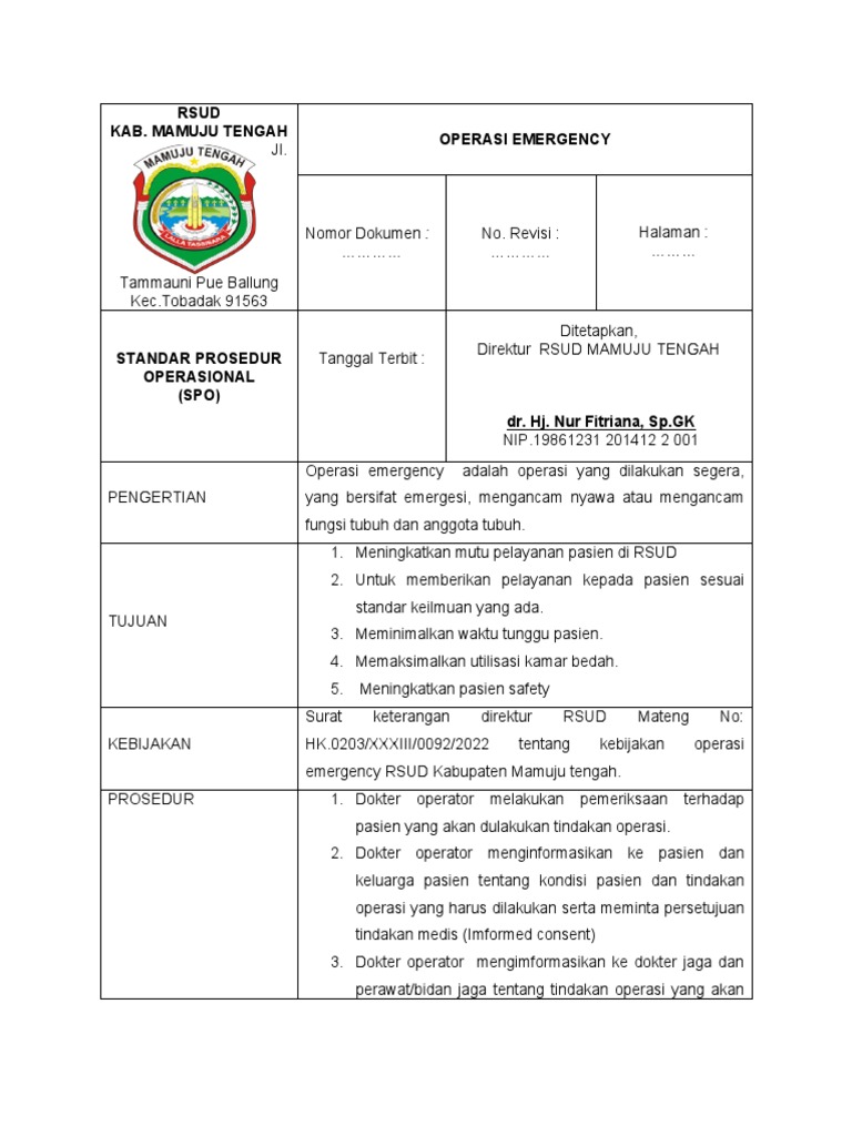 tentang adanya rencana operasi cito kepada dokter