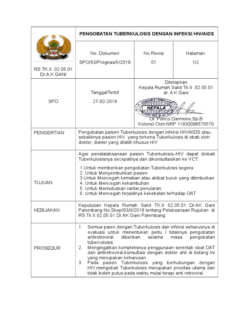 PENGERTIAN Pengobatan pasien Tuberkulosis dengan infeksi HIV/AIDS atau