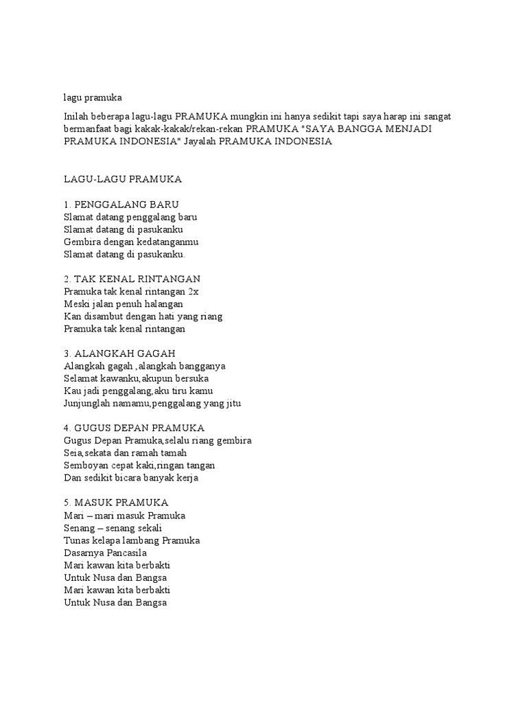 Inilah beberapa lagu-lagu PRAMUKA mungkin ini hanya sedikit tapi saya harap ini sangat