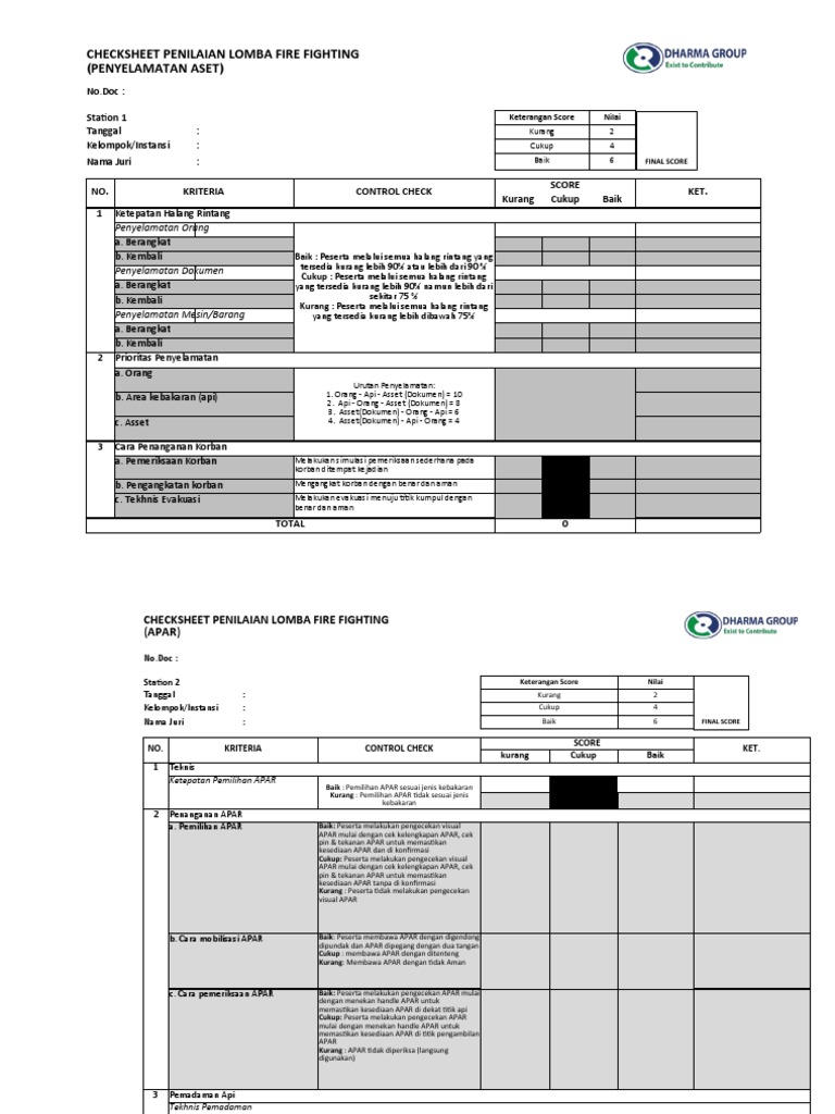 CHECKSHEET PENILAIAN LOMBA FIRE FIGHTING