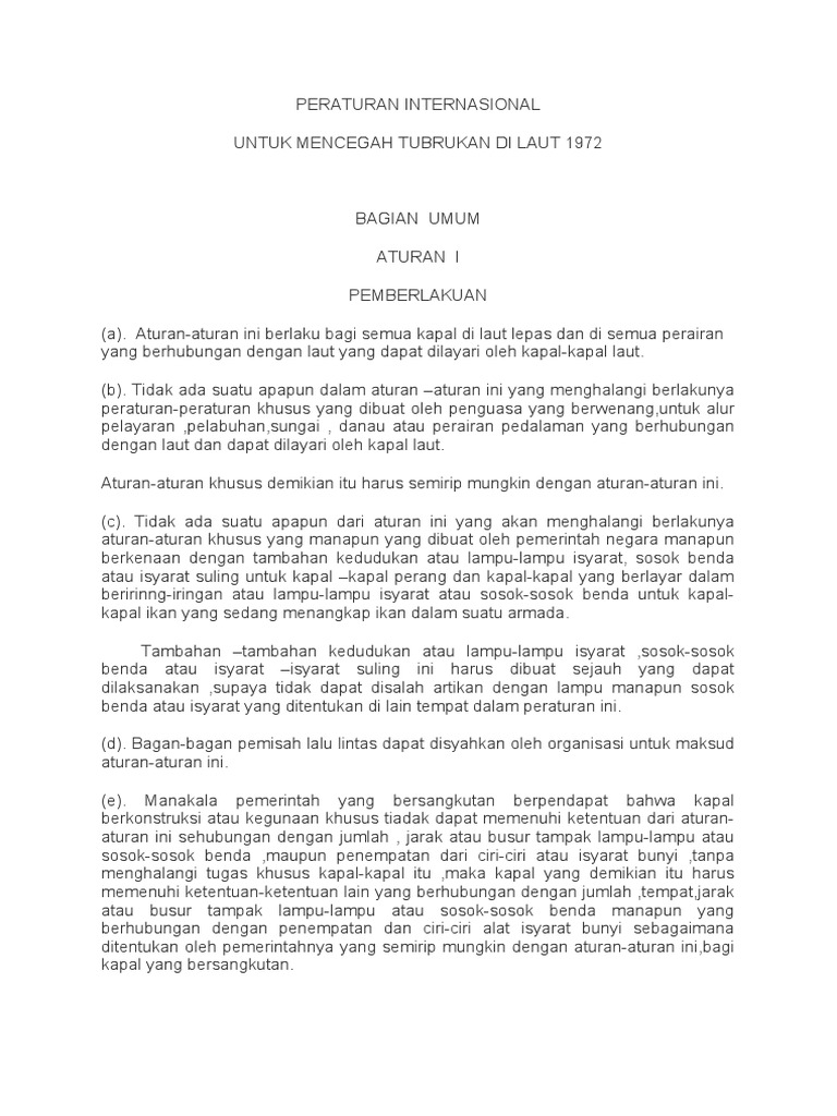 (a). Aturan-aturan ini berlaku bagi semua kapal di laut lepas dan di semua perairan