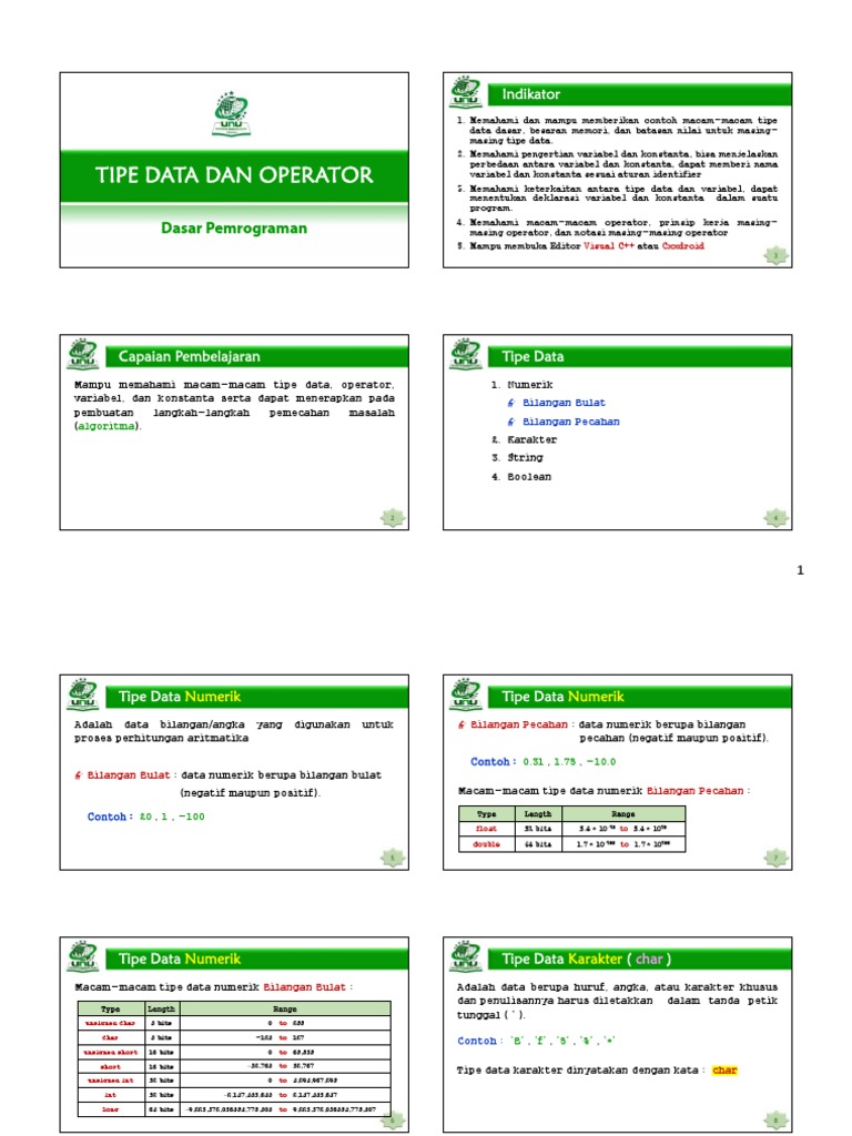 Mampu memahami macam-macam tipe data, operator, 1. Numerik