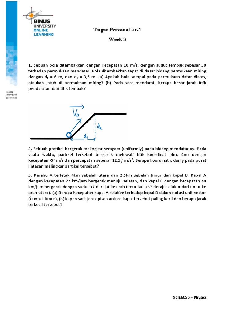 1. Sebuah bola ditembakkan dengan kecepatan 10 m/s, dengan sudut tembak sebesar 50