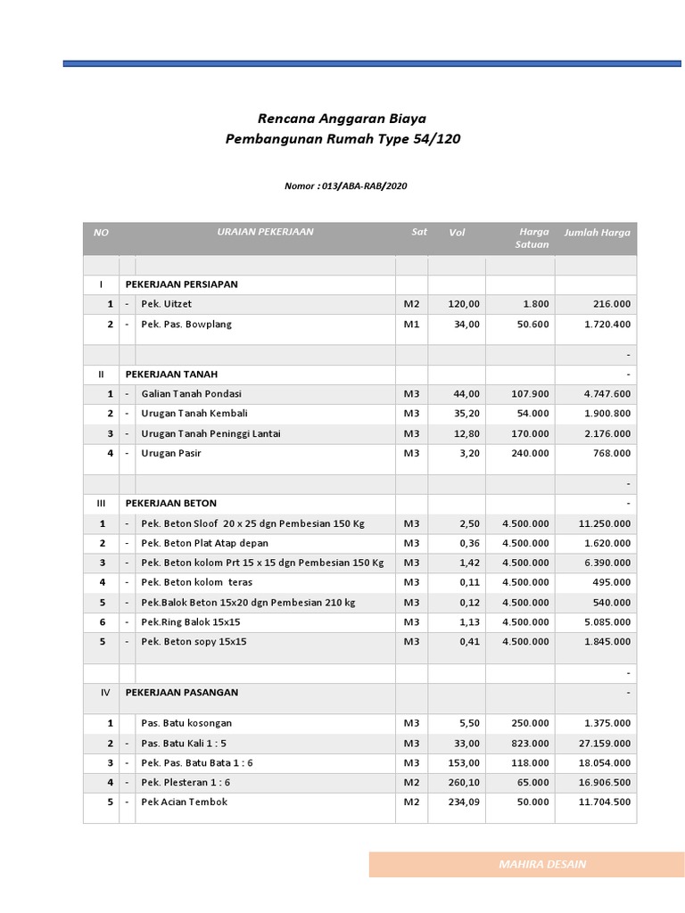 RENCANA ANGGARAN BIAYA TYPE 54/120