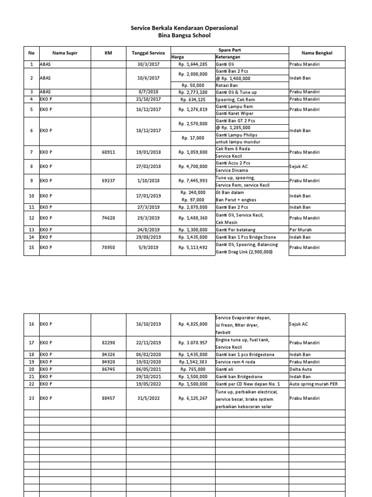 23 EKO P 88457 31/5/2022 Rp. 6,125,267 service besar, brake system Prabu Mandiri