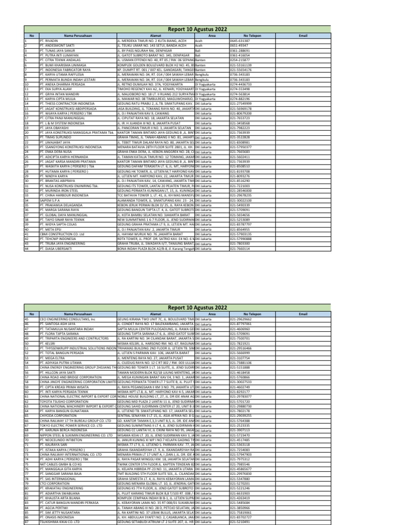 30 PT. BRANTAS ABIPRAYA JL. D.I PANJAITAN KAV, 14, CAWANG, JAKARTA TIMURDKI Jakarta 021-8516290