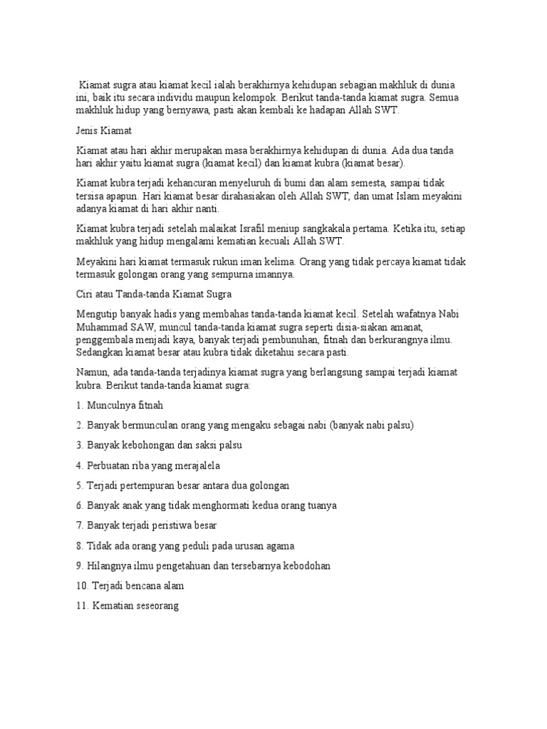 ini, baik itu secara individu maupun kelompok. Berikut tanda-tanda kiamat sugra. Semua