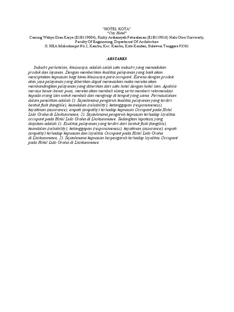 Meningkatnya dunia pariwisata saat ini di Indonesia menunjukkan arti pentingnya sebuah hotel.