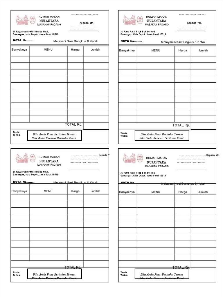 NOTA No……… Melayani Nasi Bungkus & Kotak NOTA No……… Melayani Nasi Bungkus & Kotak