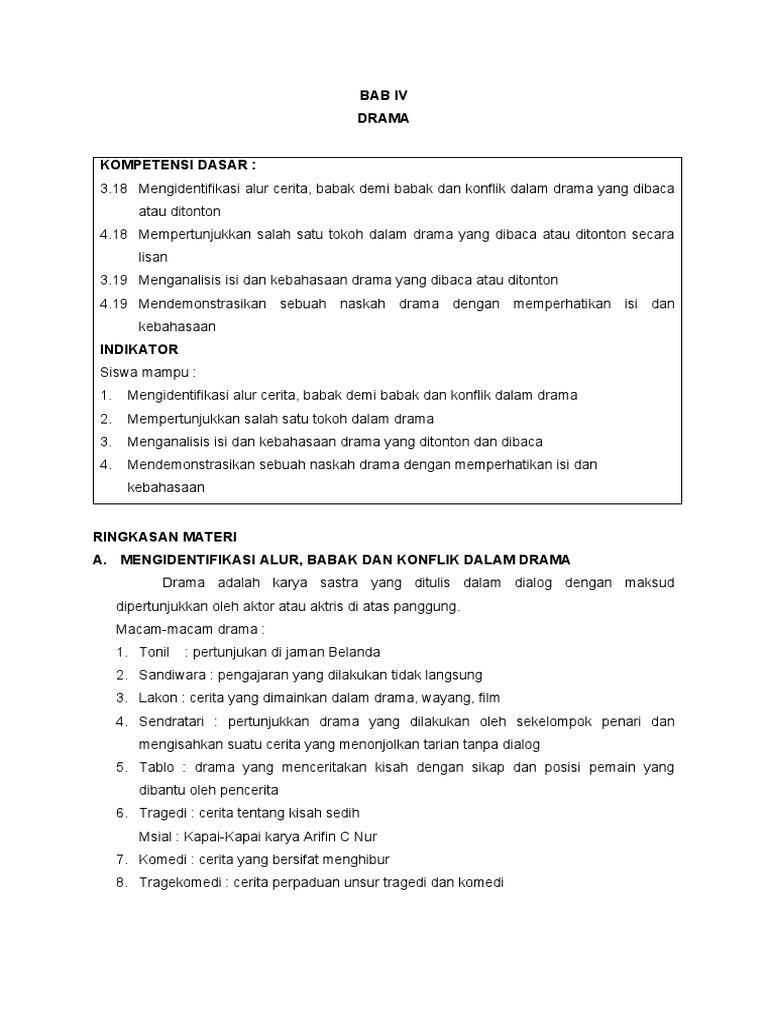 A. MENGIDENTIFIKASI ALUR, BABAK DAN KONFLIK DALAM DRAMA