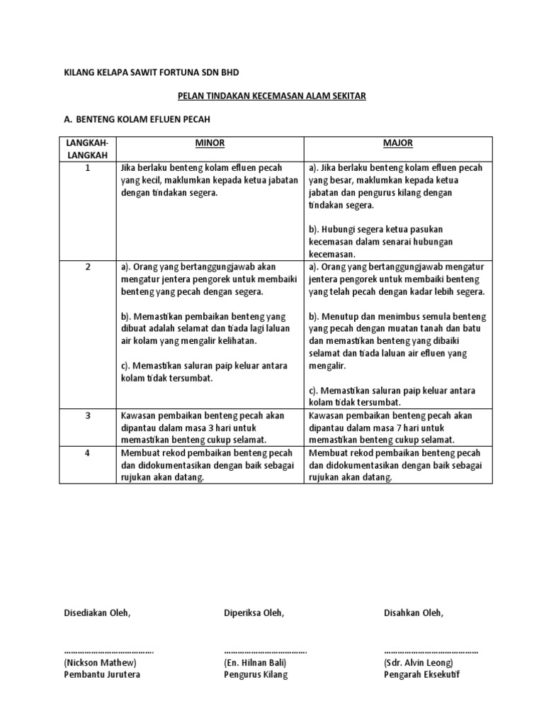 dengan tindakan segera. jabatan dan pengurus kilang dengan