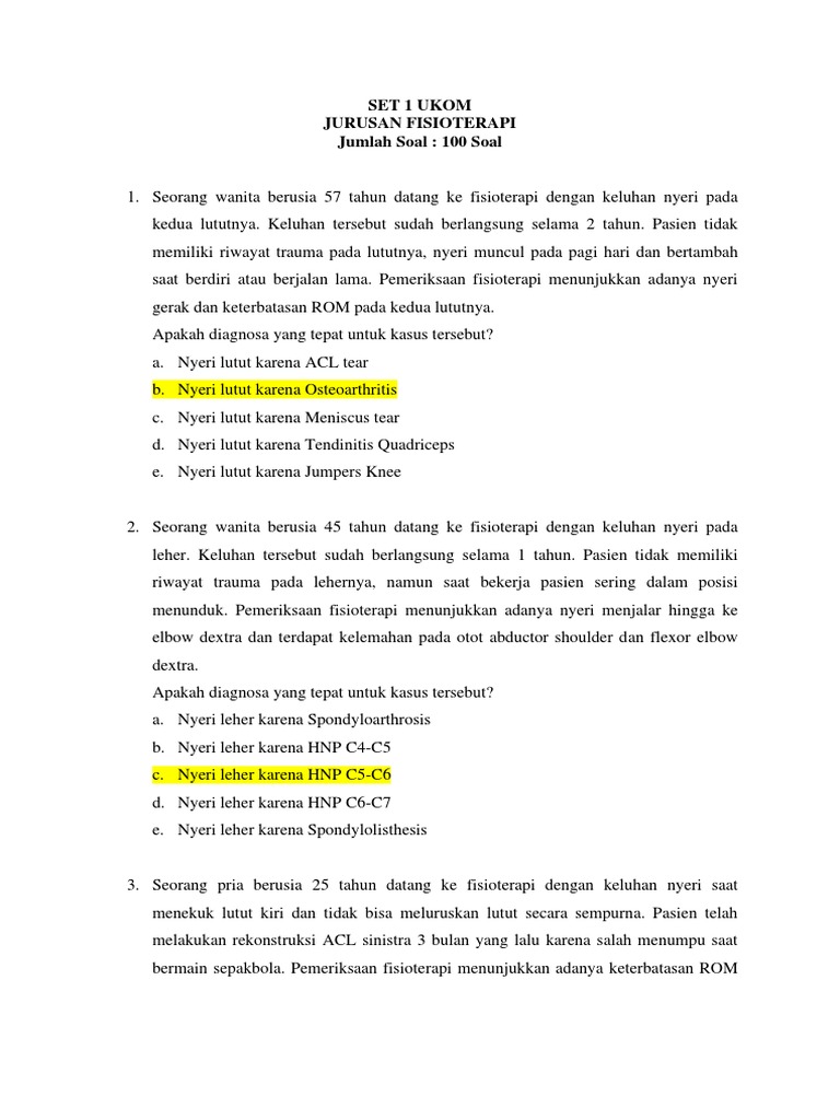 1. Seorang wanita berusia 57 tahun datang ke fisioterapi dengan keluhan nyeri pada