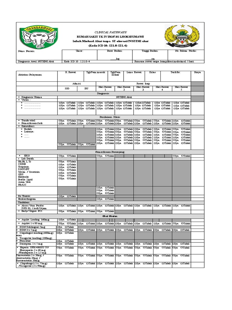 Diagnosis Awal: NSTEMI Akut Kode ICD 10 : I.21.0-4 Rencana rawat tanpa komplikasi maksimal: 5 hari