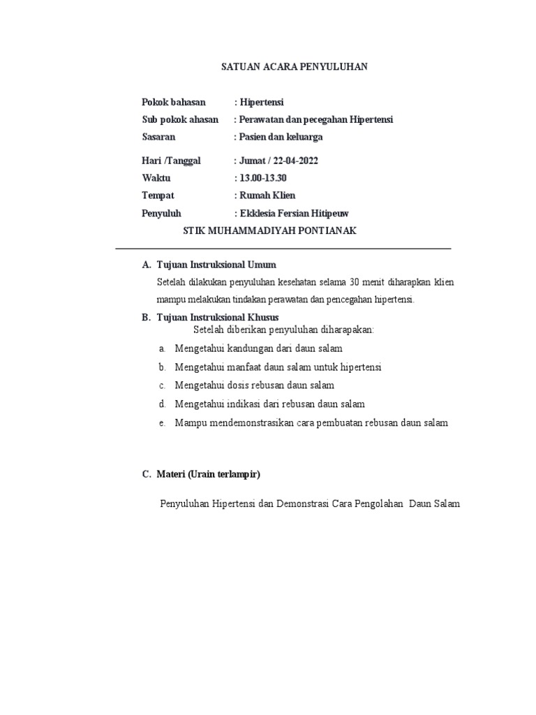 SATUAN ACARA PENYULUHAN
