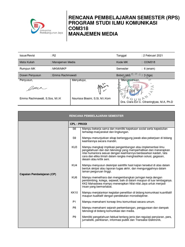 RENCANA PEMBELAJARAN SEMESTER (RPS)