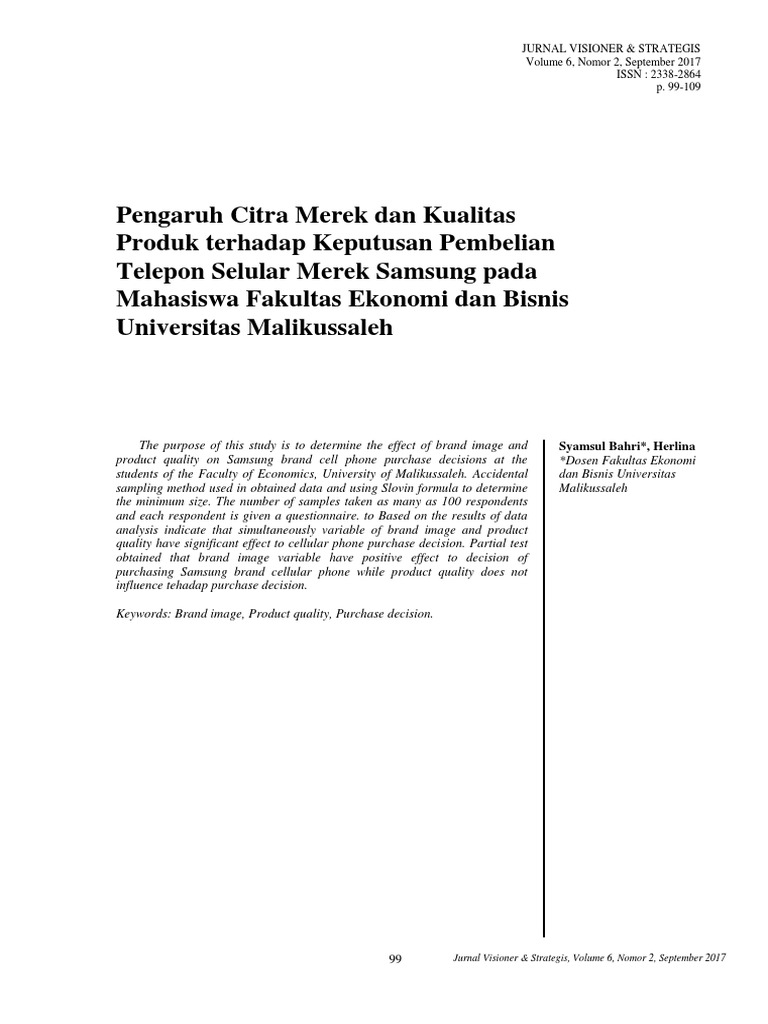 Malikussaleh. telepon seluler merek Samsung sedangkan variabel