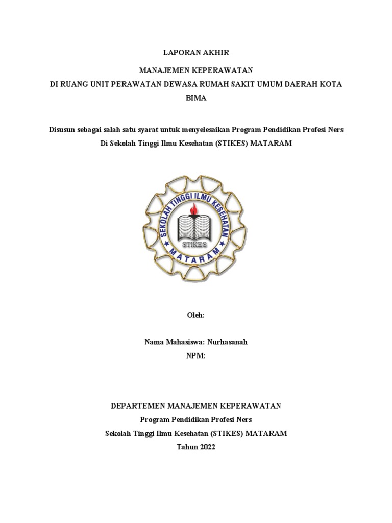 laporan akhir Manajemen Keperawatan Diruangan Perawatan Unit perawatan dewasa RSUD