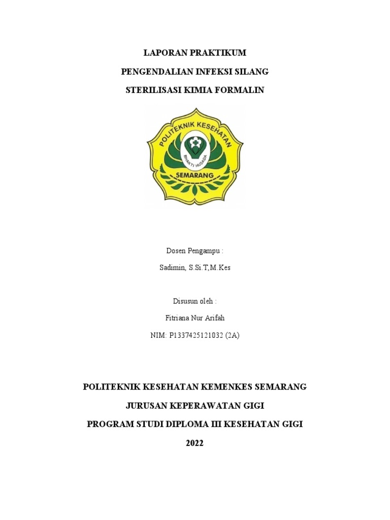 1. Mengetahui prinsip-prinsip kerja seterilisasi kimia formalin