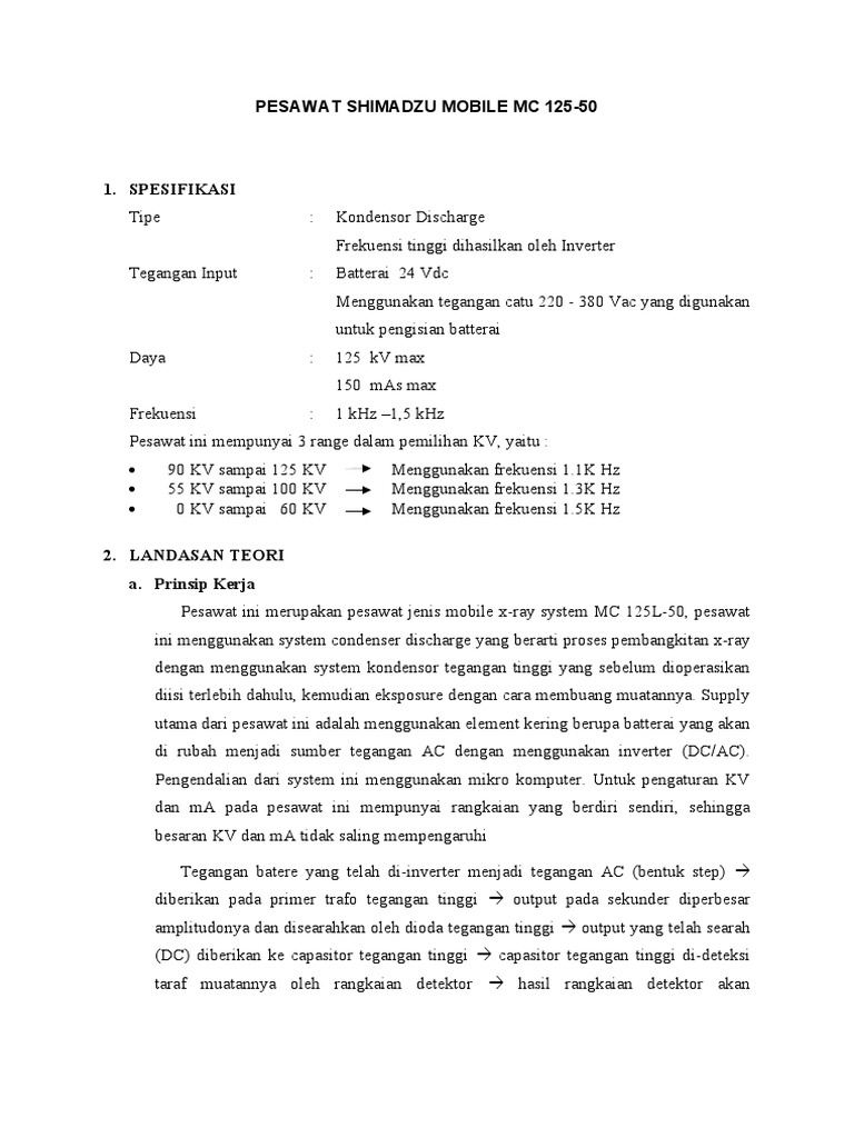 Pesawat ini merupakan pesawat jenis mobile x-ray system MC 125L-50, pesawat